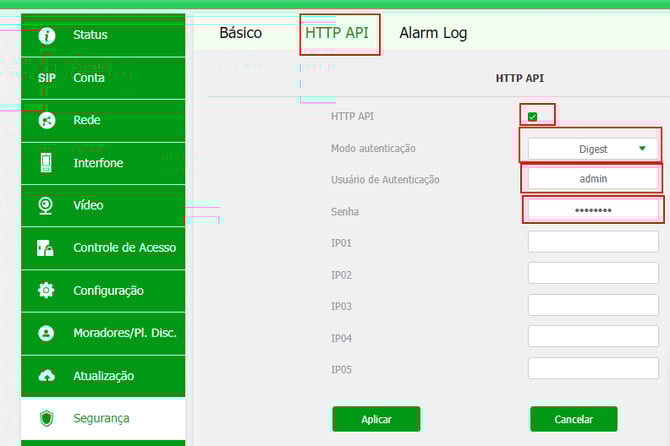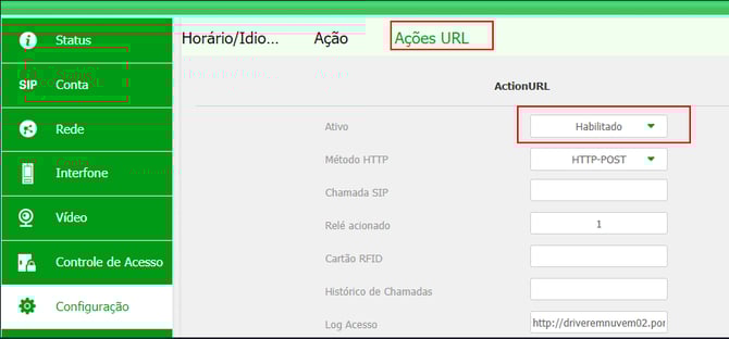 ℹ️ As Ações URL permitem a integração entre o equipamento e o Gerenciamento de Eventos.