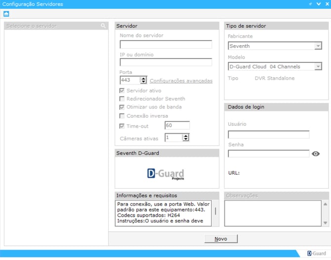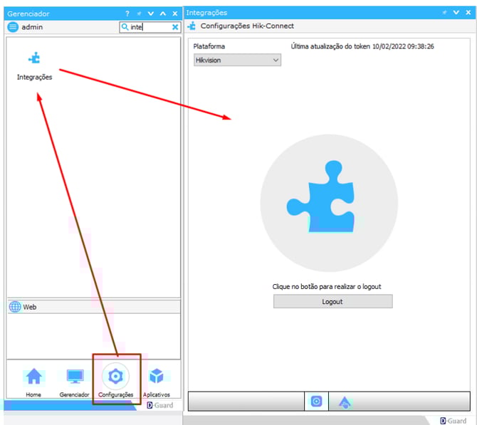 A mesma conta da plataforma onde o dispositivo está cadastrado deve estar integrada ao servidor D-Guard.