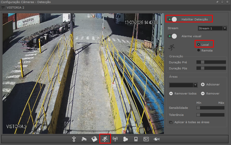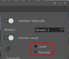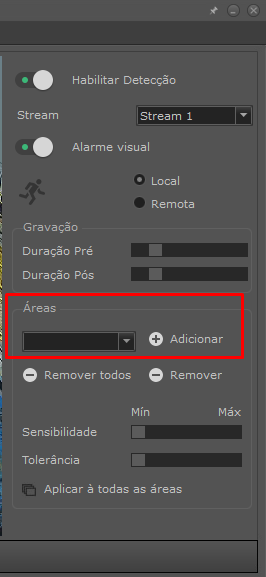 Quando o modo local é selecionado, serão exibidas as opções de configuração das áreas de detecção.