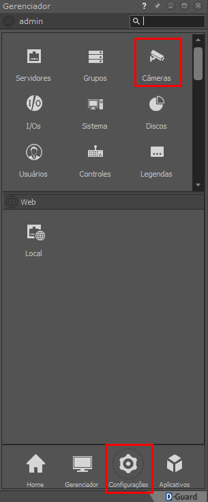Clique em Câmeras