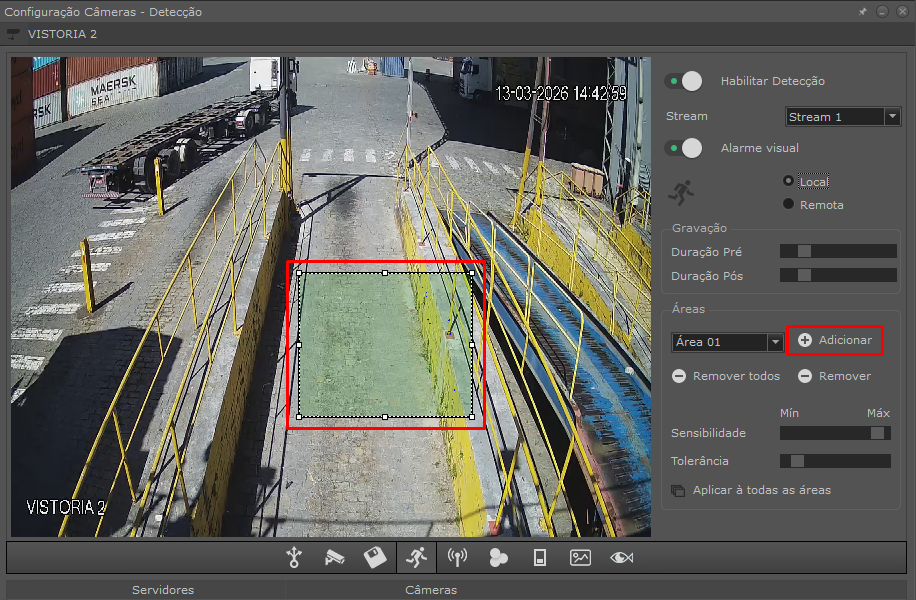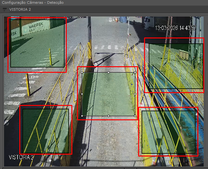 As áreas de detecção são delimitadas na imagem e indicam onde o sistema deverá analisar movimento.