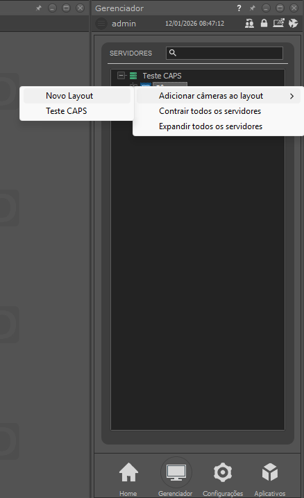 Por padrão o sistema cria um Layout para cada equipamento cadastrado, mas caso necessário, pode-se criar um layout com câmeras especificas seguindo o procedimento abaixo:
