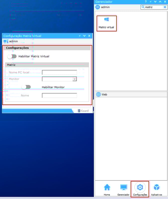 Orientar a ativação e utilização da Matriz Virtual no D-Guard para envio de Layouts entre estações de monitoramento na mesma rede.