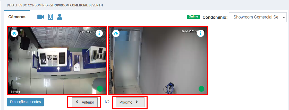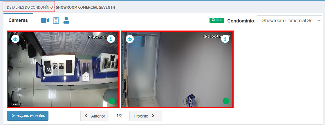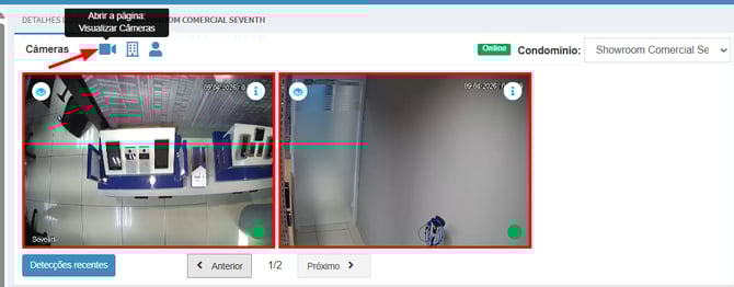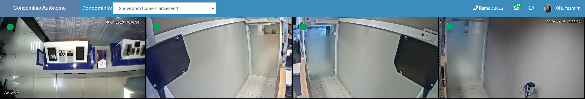 Ao acessar essa opção, é exibida uma tela dedicada com a visualização centralizada de todas as câmeras vinculadas ao condomínio.