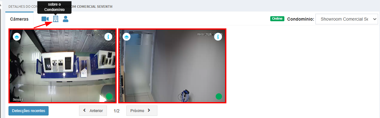 A seção Detalhes do condomínio é utilizada durante o monitoramento de eventos, permitindo visualizar rapidamente informações relevantes sem sair da tela principal.