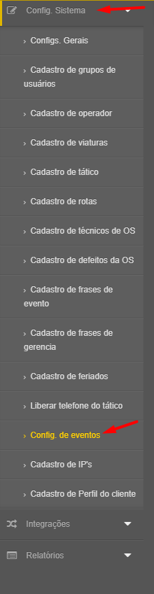Primeiramente você entrará na aba Config. Sistema - Config de eventos
