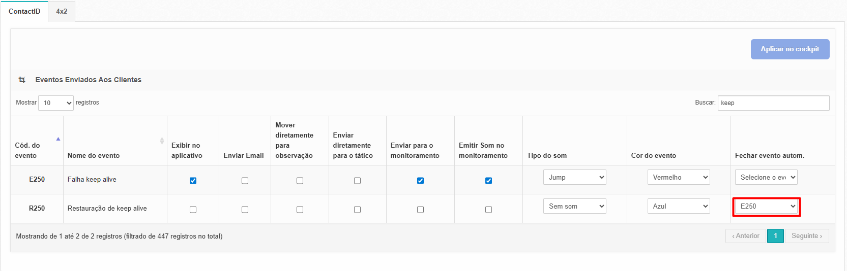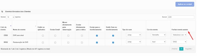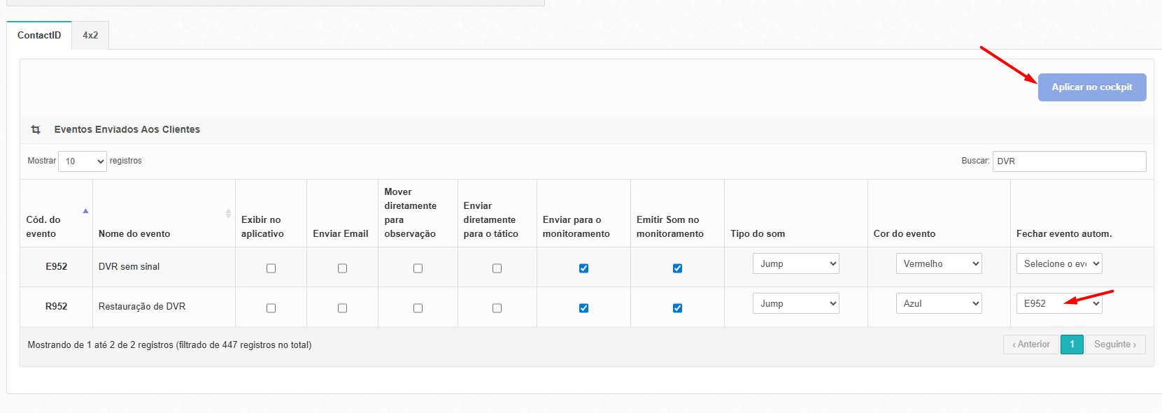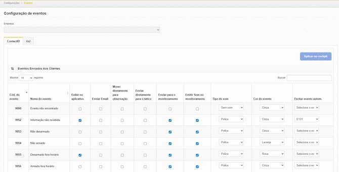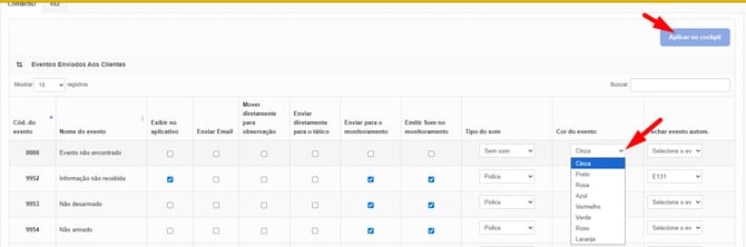Após selecionar o evento desejado, basta clicar em Aplicar no Cockpit para salvar a configuração.