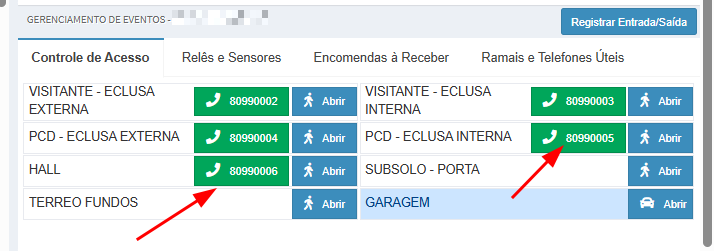 • Exibe os números de ramais ao lado do comando de abertura de portas