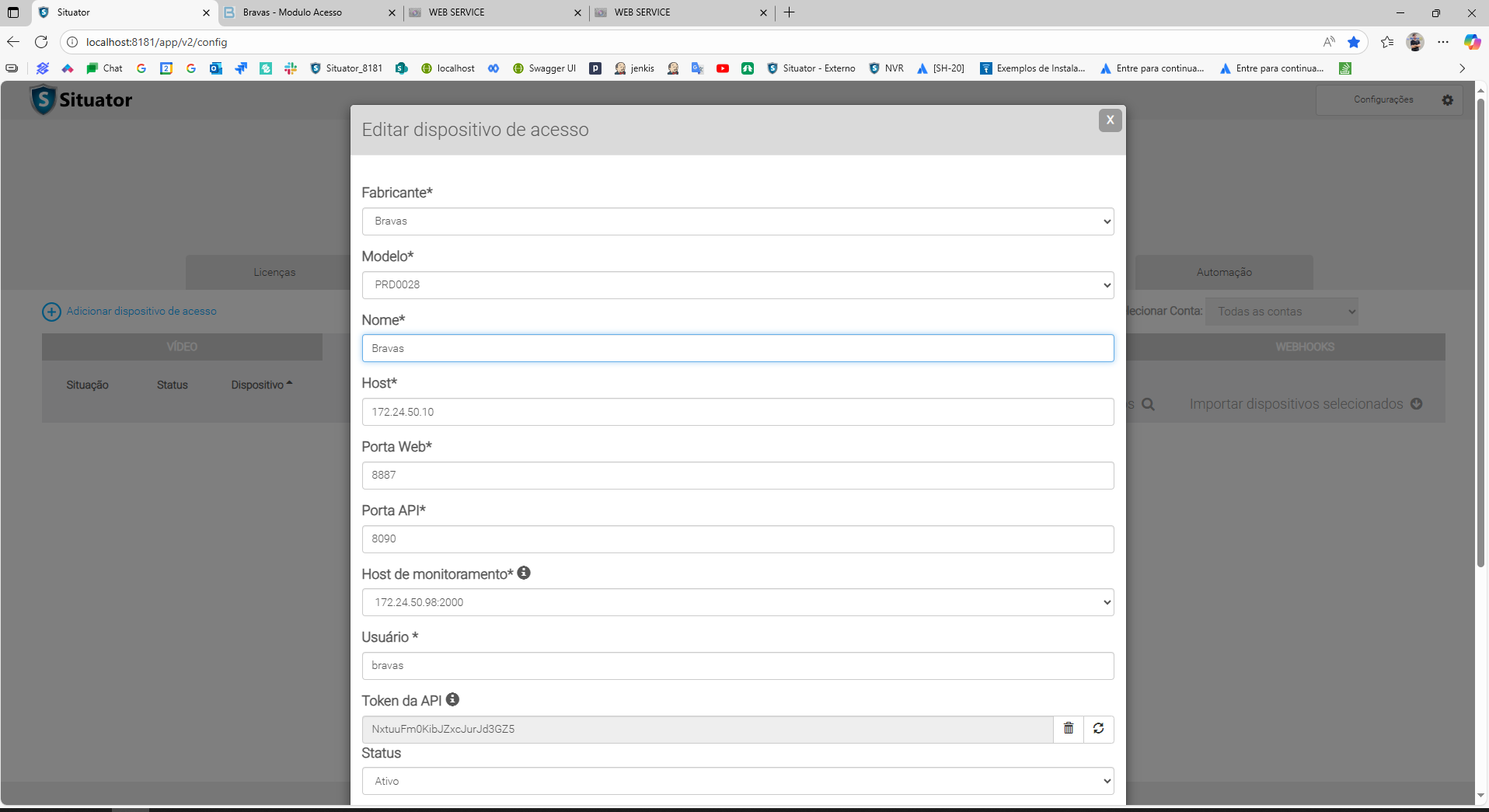 Este artigo descreve como configurar e integrar o dispositivo Bravas PRD0028 ao Situator, garantindo que o token de autenticação seja corretamente gerado e persistido no dispositivo durante a primeira conexão.