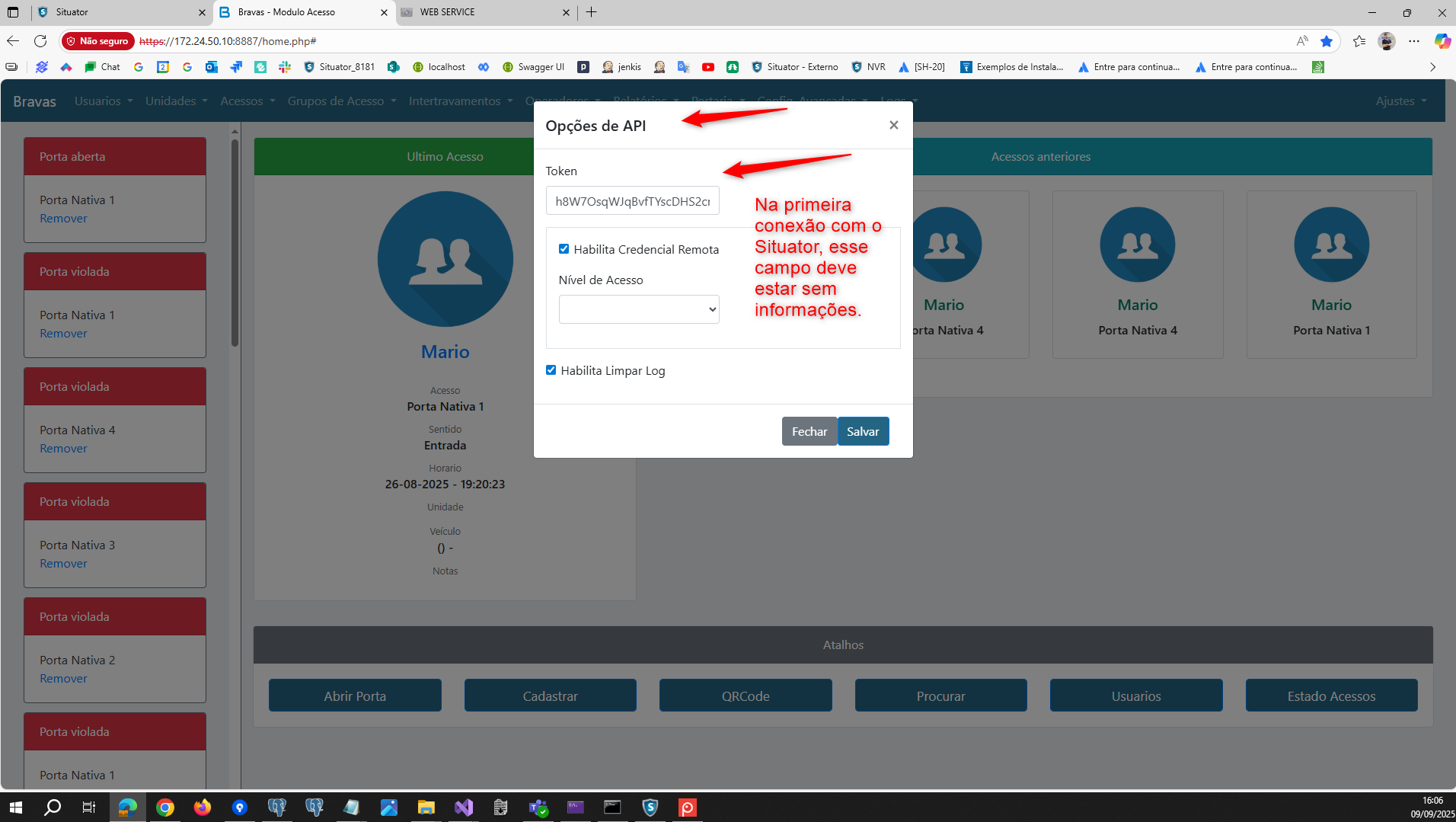 ⚠️ A correta conexão do Bravas PRD0028 no Situator garante a persistência do token no dispositivo.