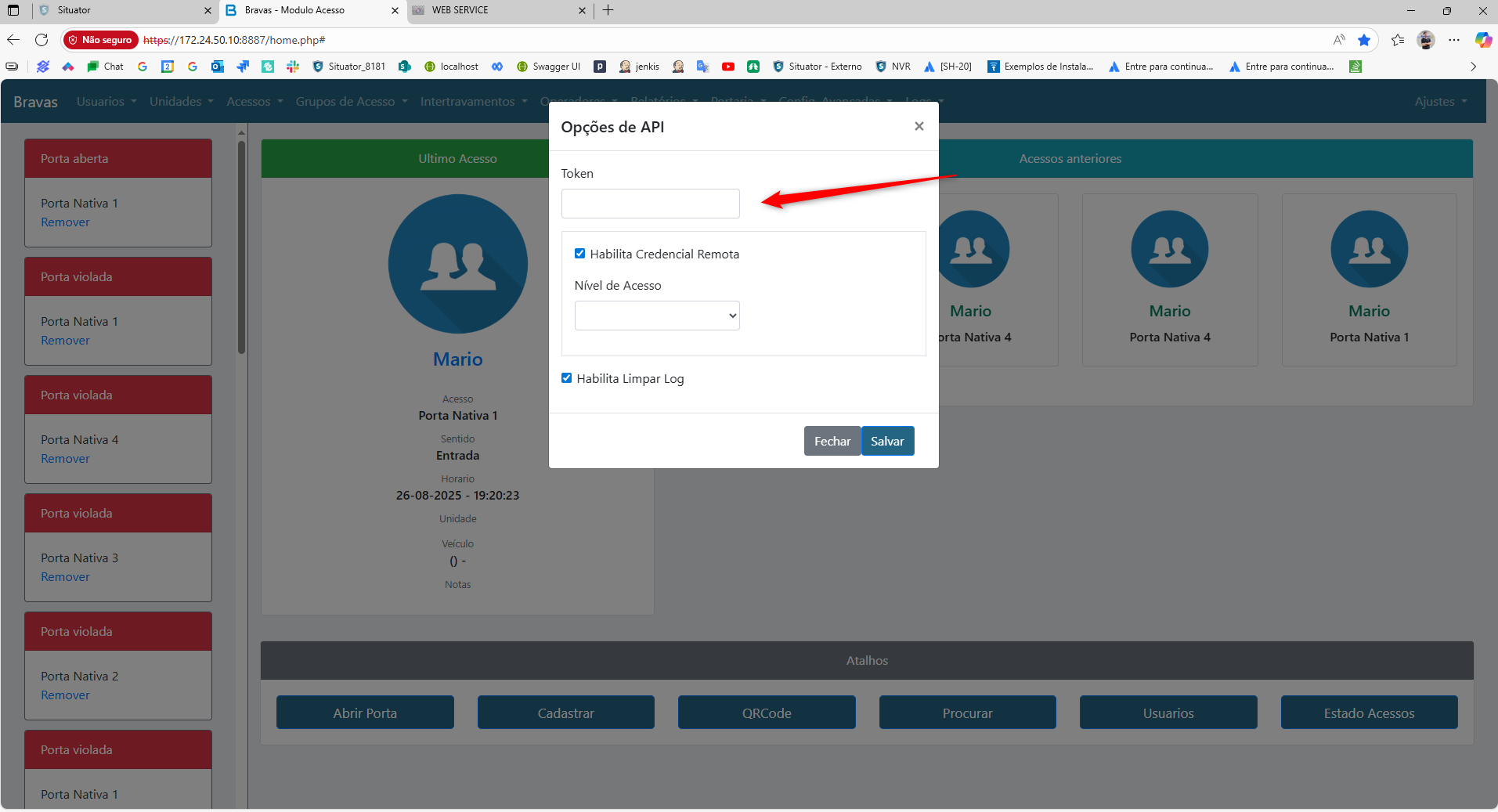⚠️ Caso a integração apresente falha na primeira tentativa, sempre verifique se o campo de token na interface web do dispositivo está vazio ou corresponde ao token configurado no Situator.