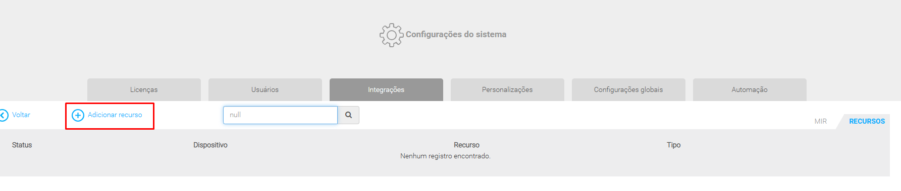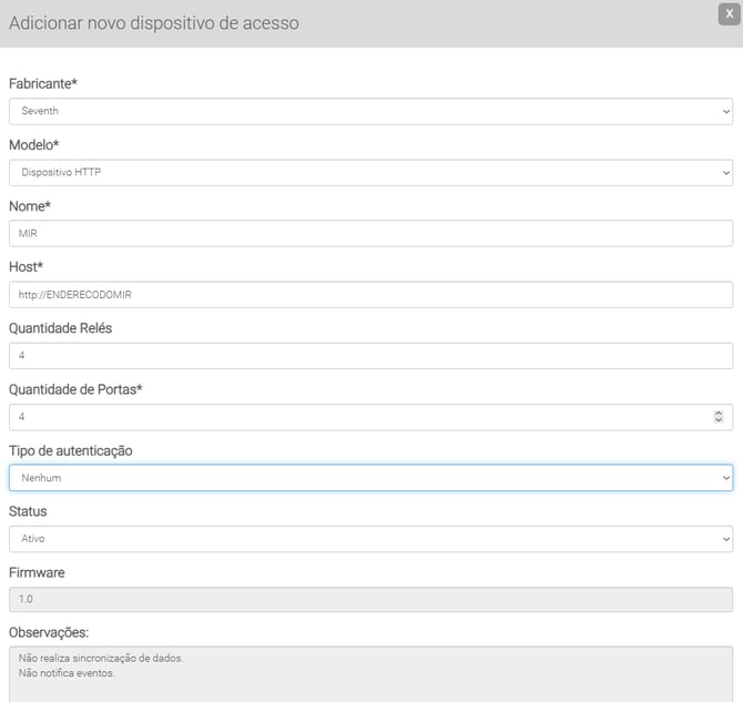 3. Cadastre o MIR como Dispositivo HTTP