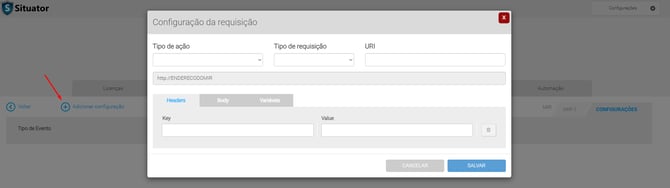 A URI deve ser configurada exatamente conforme o padrão indicado para garantir o acionamento correto.