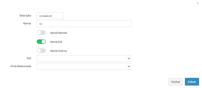 Preencha os dados do ramal: