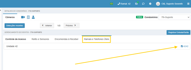 Para visualizar os ramais, no Gerenciamento de Eventos, clique na aba "Ramais e Telefones Uteis"