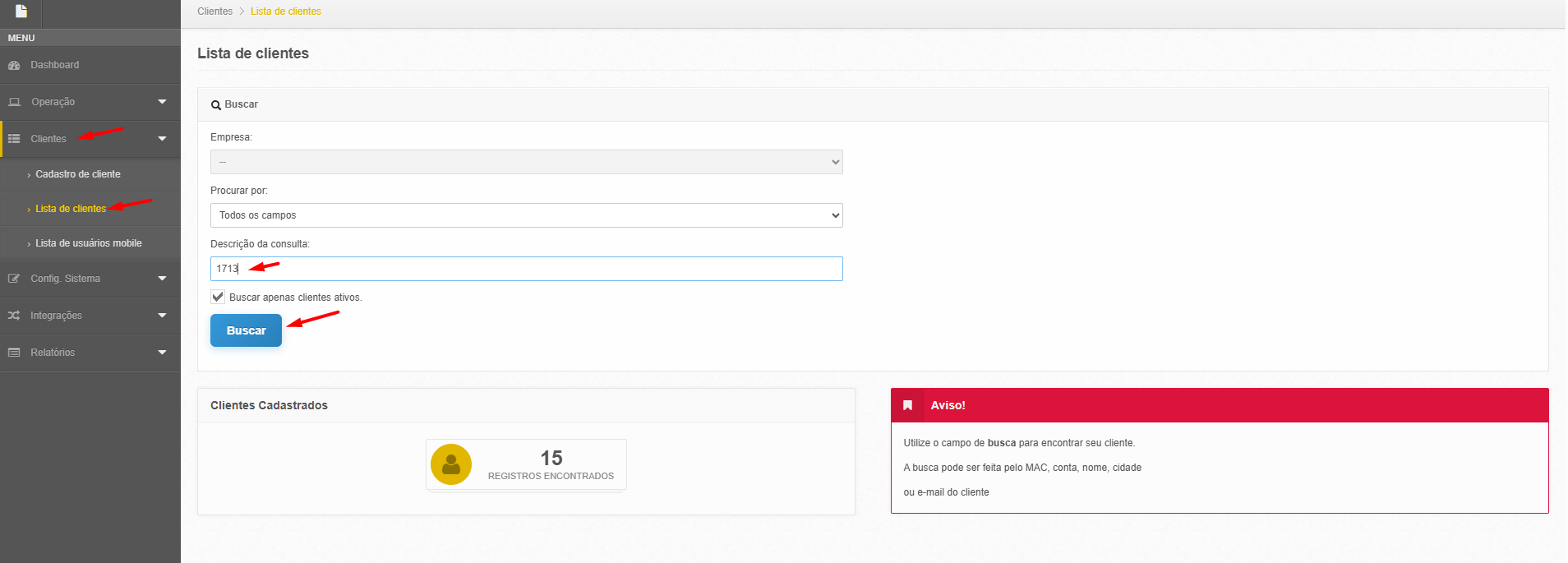 Primeiramente no Portal Parceiros, selecione a aba "Clientes" - "Lista de Clientes", Após isso no campo " Buscar " você digitará o nome do cliente(pode ser por E-mail ou Conta)