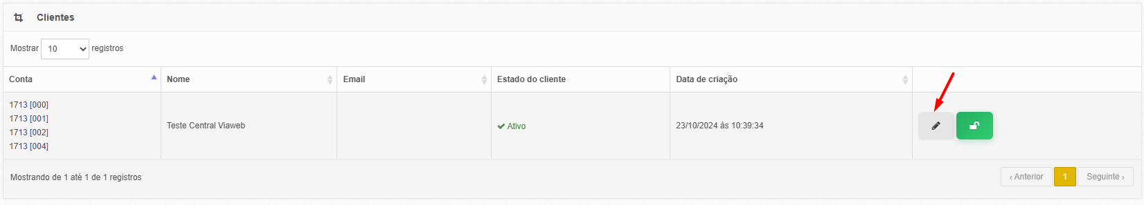 No canto Direito da tabela de Clientes, clique no botão "Editar"