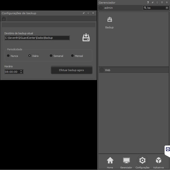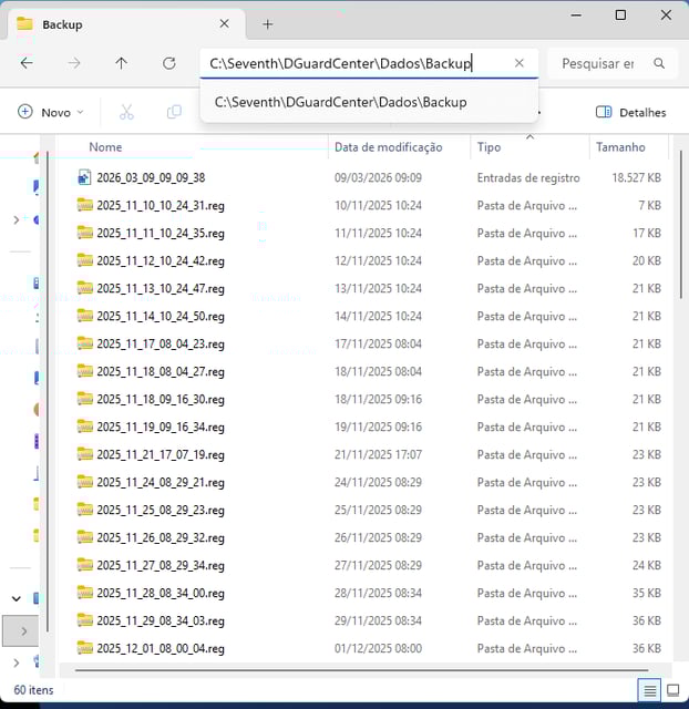 Este Computador → Disco C → Seventh → DGuardCenter → Dados → Backup