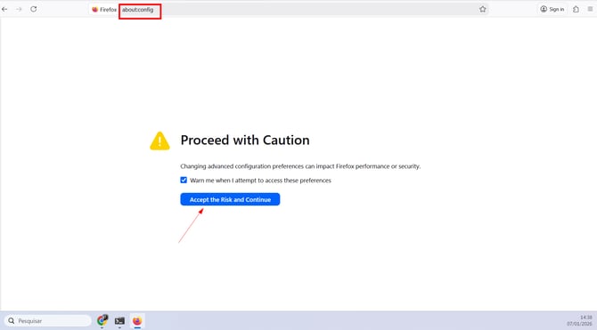 1. Acessar as configurações avançadas do Firefox
