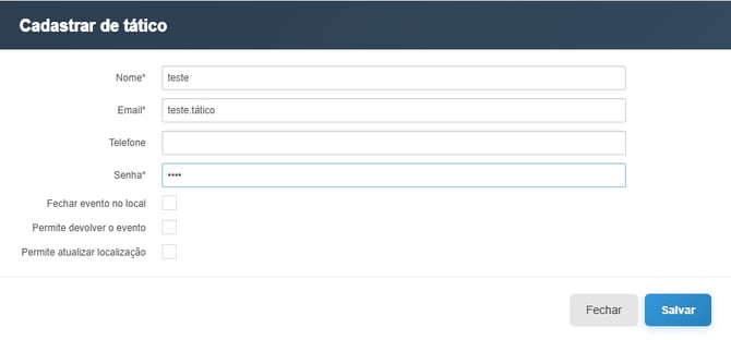 a opção "Permitir atualizar a localização" essa opção marcada permitirá que o tático atualiza a localização do local, assim mesmo se ele não estiver no local correto o mesmo conseguirá fechar o evento.