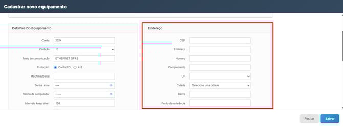 Nessa mesma tela, na parte de baixo do cadastro á 3 campos que podem ser marcados conforme se adpta com a forma de Operação da unidade de vocês, a opção "Fechar evento no Local" com ela marcada o tático conseguirá fechar o evento estando no local do evento, local esse que é cadastrado no equipamento do cliente, dentro da conta do Remoty, abaixo deixarei uma imagem aonde é cadastrado o endereço ao qual o tático conseguirá fechar os eventos: