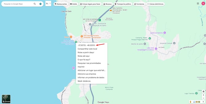 No campo endereço dentro da conta terá as opções Longitude e Latitude, é necessário colocar corretamente esses dados pois o aplicativo irá puxar o endereço dessas informações, caso tenha dúvidas em como buscar a Longitude e Latitude de um local, basta ir no Google Maps e clicar com o botão direto do mouse, a latitude será o número a esquerda e a longitude será o numero á direita