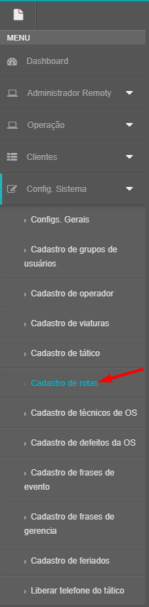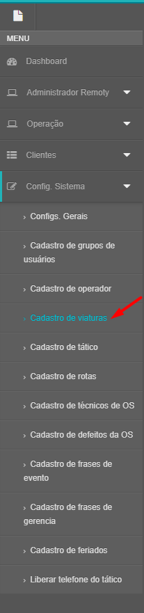 3 - Após criar as rotas, crie também a viatura na opção Cadastro de viaturas