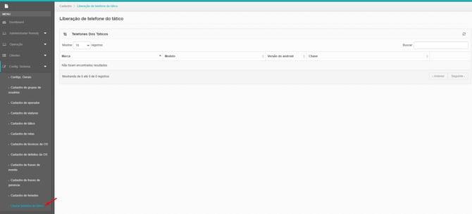 Nessa aba aparecerão todos os celulares que já se logaram no aplicativo do tático usando um dos logins da unidade de vocês, para fazer a liberação basta clicar no ícone de "Cadeado" que estará com a cor vermelha indicando que ainda não está liberado o acesso, clicando no "Cadeado" Vermelho o mesmo ficará Verde, indicando que o tático a partir de agora estará liberado para acessar o aplicativo.