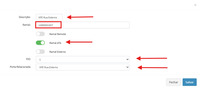 Informe os dados do ramal correspondente à porta que realizará o atendimento.